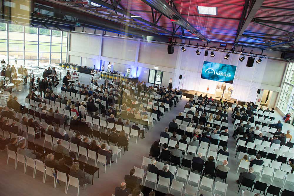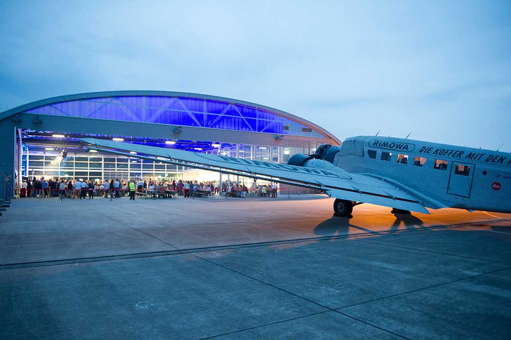 - Inspiring atmosphere in the Hugo Junkers Hangar – a light-flooded multifunctional hall right next to the runway